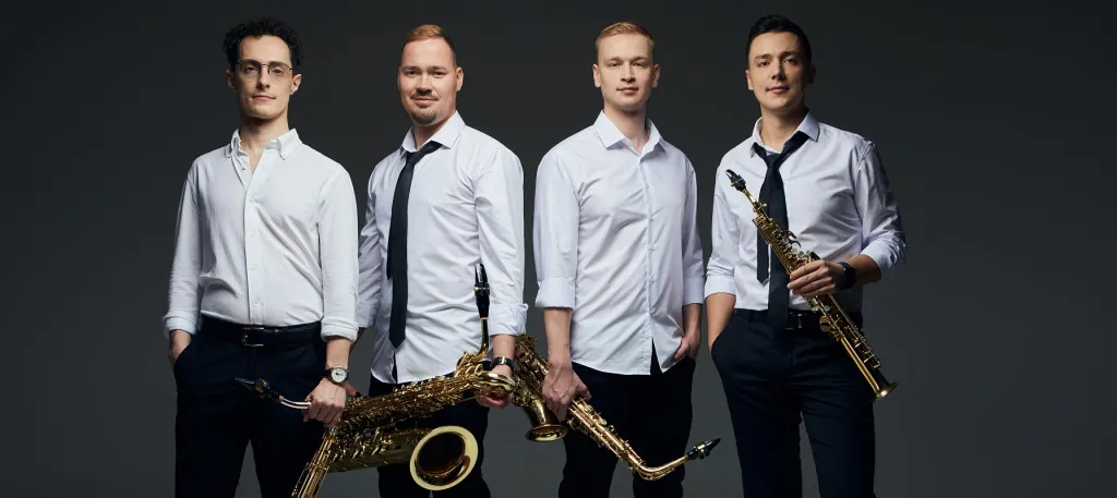 Исполнители: — Владимир Кознов, сопрано-саксофон; — Геннадий Полуяктов, альт-саксофон; — Станислав Пялов, тенор-саксофон; — Илья Богомол, баритон-саксофон. Выступят четыре ярких, харизматичных, виртуозных музыканта, которым подвластны абсолютно все стили, жанры и направления. Российский квартет саксофонистов представит Новогоднюю программу, которая охватит широкий спектр репертуара: от классики Моцарта и Сен-Санса до советской музыкальной ностальгии и сочинений в стиле кроссовер. Зрителей ждут неожиданные трактовки оперы «Кармен», «Ночи на Лысой горе» и джазовых пьес по мотивам Гершвина. Прозвучат также всеми любимые морозные хиты в авторских обработках — от песен «Пять минут» и «Три белых коня» до мелодий «Звенит январская вьюга» и «Колыбельная медведицы». Программа — В. А. Моцарт. Увертюра к опере «Свадьба Фигаро»; — И. Альбенис. Три пьесы: «Песня о любви», «Колыбельная», «Лето»; — Бизе — Я. Ито. Фантазия на темы из оперы «Кармен» для квартета саксофонов; — Мусоргский. Симфоническая картина «Ночь на Лысой горе»; — У. Баркер. Сюита «Вот Квартет»; — Сен-Санс. Симфоническая поэма «Пляска смерти»; — Шостакович. Сюита для джаз-оркестра  1; — Ди Бакко. «Четыре саксофона в Париже», фантазия на пьесу Гершвина «Американец в Париже»; — Л. Андерсон. «Катание на санях»; — Б. Андерссон. «Счастливого Нового года»; — Гранадос. «Колыбельная». Авторские композиции по мотивам знаменитых советских песен: — «Пять минут» из кинофильма «Карнавальная ночь»; — «Три белых коня» из кинофильма «Чародеи»; — «Звенит январская вьюга» из кинофильма «Иван Васильевич меняет профессию»; — «А снег идёт» из кинофильма «Карьера Димы Горина»; — «Колыбельная медведицы» из мультфильма «Умка». В программе возможны изменения.