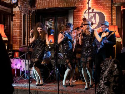 Концерт в стиле Gatsby от московского проекта Postmodern Band. Озорное интерактивное шоу в исполнении трёх джазовых див и музыкантов-виртуозов, программа из современных зарубежных хитов в авторских аранжировках, и кавер-версий шедевров из репертуара винтажных звёзд (Postmodern Jukebox, Puppini Sisters). Дополнительные опции: острый ум солисток, танцы и песни с публикой.