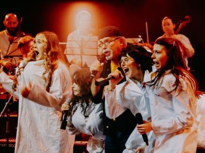 Исключительная особенность выступлений бэнда на Новой сцене Александринского театра — участие в шоу юных артистов, учеников Музыкального театра детей.