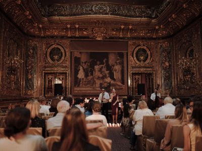 До концерта вы сможете посетить экскурсию по залам особняка, который изумляет великолепием своего внутреннего убранства. Дом архитектора расположился неподалеку от Исаакиевского собора. Хозяин особняка меценат Александр Александрович Половцов привлек к работе выдающихся мастеров своего времени — архитекторов Месмахера, Брюлло и Боссе. Уникальные парадные комнаты — Белый и Бронзовый залы, будуар с эркером, библиотека и отделанная кожей и орехом столовая — прекрасно сохранили свой облик до наших дней.