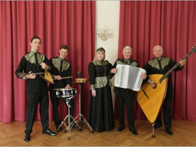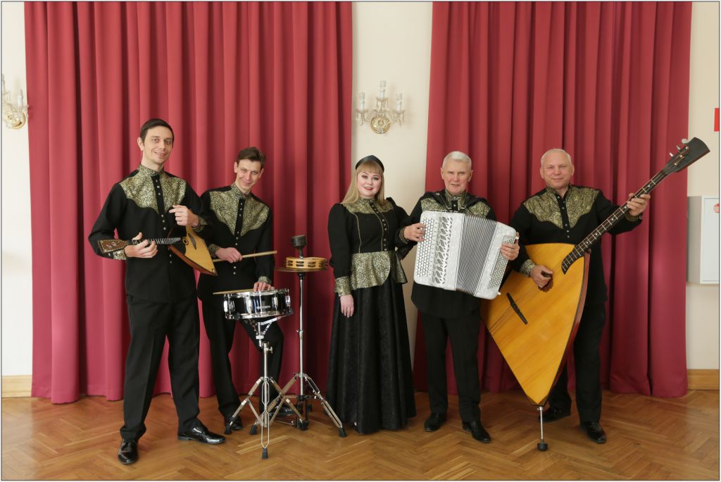 Ансамбль русских народных инструментов «Садко» в составе: Валерий Сергеев (баян), Сергей Токарев (балалайка-контрабас), Светлана Каневская (домра), Василий Коробейников (балалайка), Владислав Коротун (ударные);