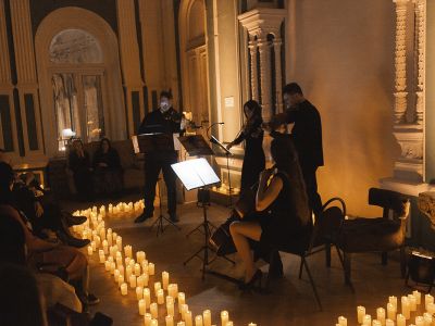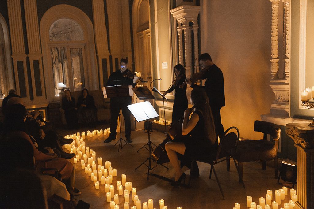 Концерт пройдет в Зеленом зале выполненном в стиле классического особняка XIX века. Высокие потолки, богатая лепнина, дворцовое убранство — всё это будет окружено сотнями свечей и придаст вечеру особую романтическую атмосферу.