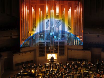 Уникальность программы в том, что большую часть вечера исполняются произведения для органа с симфоническим оркестром и хором и это совместное исполнение, совмещенное с проекциями, создаёт огромную звуковую мощь и красоту, не имеющую себе равных!