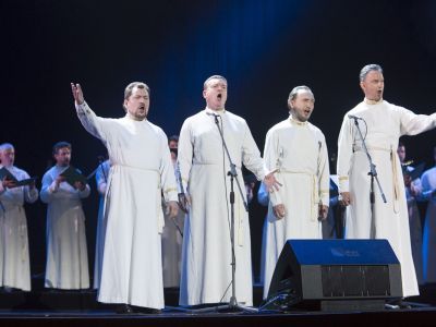 В первом отделении звучат монастырские и церковные песнопения, духовные стихи, канты. Второе же составлено полностью из военных, народных и казачьих песен, которые давно снискали огромную популярность у зрителя. Только мужскими голосами A’capella будут исполнены такие известные песни, как «Любо, братцы, любо», «Казачья молитва», «Не для меня», «Когда мы были на войне», «Вот полк пошёл», «Ой, то не вечер...», «За тихой рекою» и другие.