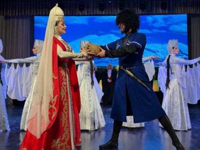 В программе яркие зажигательные композиции танцев народов Карачаево-Черкесской Республики, мелодии родного края, живое выступление оркестра народных инструментов.
