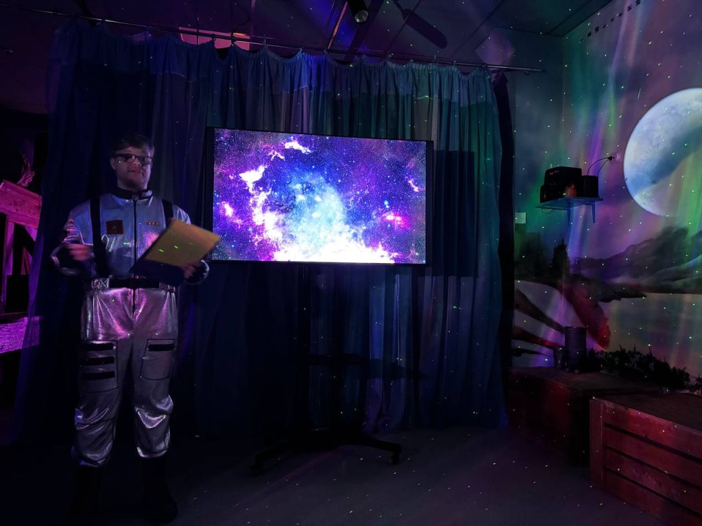 Вместе с профессиональным космонавтом дети посетят 7 космических станций, где узнают всё о планетах, героях Советского Союза, первых космонавтах, пройдут тренировку настоящих астронавтов, посетят планетарий и соберут собственную модель Солнечной системы.