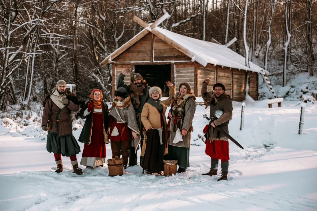 Зима для викингов – лучшее время, чтобы гулять и пировать с друзьями и близкими после долгих и трудных походов!Приезжайте к нам в атмосферу раннего средневековья и проведите своё время как настоящие викинги! ​С нами всегда интересно и весело! Вы узнаете о быте и ремеслах жителей средневекового городища, услышите увлекательные рассказы о боевых походах этой легендарной эпохи и освоите азы строевой подготовки, проверите себя на меткость в стрельбе из лука и метании топоров, научитесь разводить огонь с помощью кресала, кремня и трута, попробуете себя в роли кузнеца. Познакомитесь с зимними обрядами викингов, узнаете о их новогодних традициях. Станете очевидцами древнего обряда - сжигания йольского полена. Прекрасным новогодним подарком для многих девушек станет гадание на рунах или знакомство с древними секретами рукоделия. Погрузиться в атмосферу средневековье вам помогут наши мастерские с аутентичными инструментами и оборудованием, тематические зоны и развлекательные площадки. На территории городища представлена средневековая кухня и атмосферный базар, где можно купить тематические сувениры эпохи средневековья. Яркое впечатление для всей семьи. В нашем поселении будет интересно абсолютно всем вне зависимости от возраста и увлечений: вы с головой окунетесь в историю, узнаете кто и как жил в этих землях 1000 лет назад, зачем сюда пришли викинги, и как они уживались с местными племенам. В стоимость билета входит: — Экскурсия по городищу — Метание топоров — Детские бои (строевая подготовка) — Мастер класс по кузнечному делу — Печать по ткани — Мастер класс по ходулям — Средневековые игры — Гадание на рунах у девушки викинга — Огненный танец валькирий Продолжительность: 3 часа. Рекомендованный возраст: 6+
