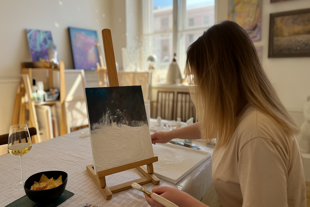 Идеально для арт-вечеринок, свиданий или празднования дня рождения. Мастер-класс можно выбрать на месте.