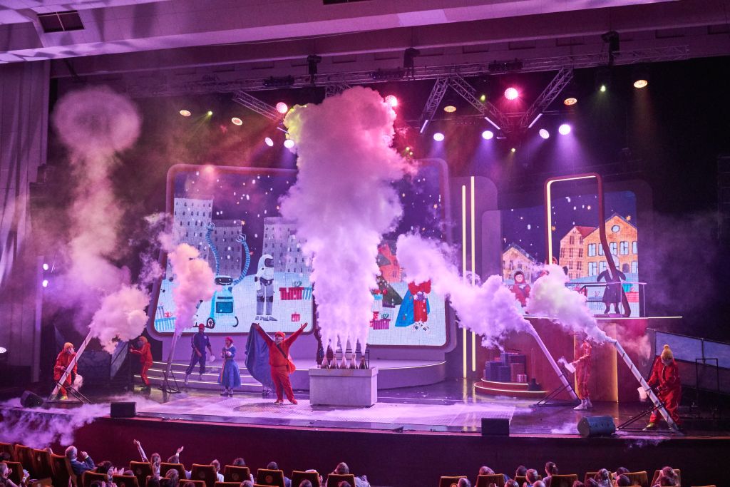 Специально для шоу разработан уникальный сценический реквизит и демонстрационное научное оборудование. 35 ярких опытов, проводимых прямо на сцене, приоткроют для гостей чудесный мир химии, физики, биологии, математики, компьютерных и других наук. Перед зрителями предстанут аниматронные роботы, беспилотные летательные аппараты, огромная ёлка из десятка катушек Теслы, ПВХ-орган, гигантские колбы с химическими реакциями, пушки, запускающие двухметровые дымные кольца, шарометы, выстреливающие сотни шариков в минуту, и выпускающие 6-метровые столбы пара азотные мортиры. В представлении задействовано более 200 единиц аудио-, видео- и светового оборудования. А интерактивные декорации созданы с применением технологий искусственного интеллекта.