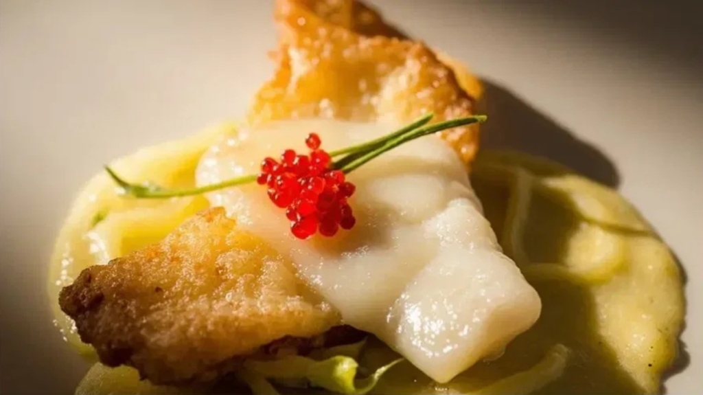 Ремулад из сельдерея с крабом и икрой;