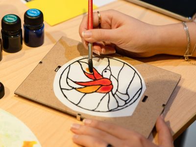 На мастер-классе участники познакомятся с экспозицией и создадут миниатюрный вариант картины на стекле с помощью специализированных художественных материалов.