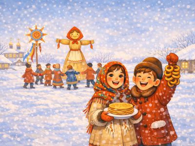 Вместе с весёлым ведущим дети познакомятся с семью матрёшками. Каждая из них расскажет свою историю и познакомит ребят с одной из масленичных традиций.