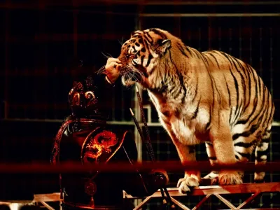 — Грозная грация: уникальный аттракцион бенгальских тигров и величественного африканского льва под руководством бесстрашных дрессировщиков Натальи и Юрия Ковалевых.