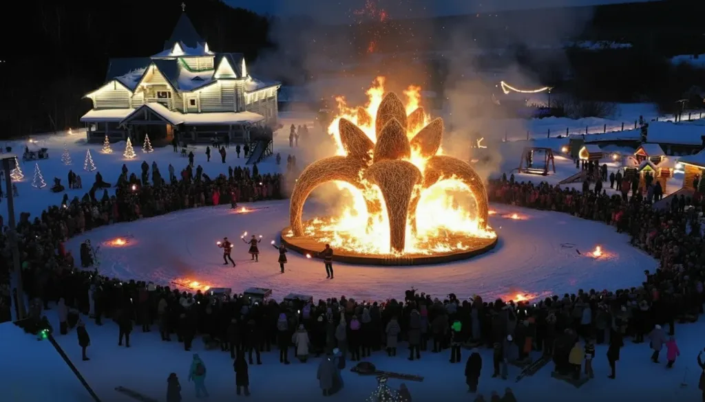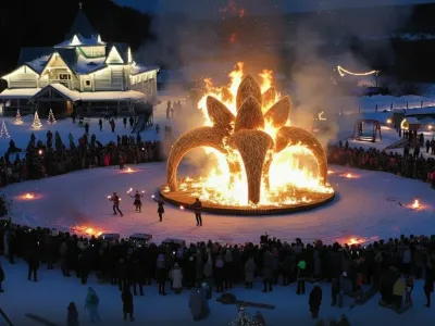 8-ми метровый «Каменный Цветок» станет символом этого чуда — вспыхнет ослепительным пламенем, чтобы превратить зимнюю тяжесть в сияние весеннего обновления.