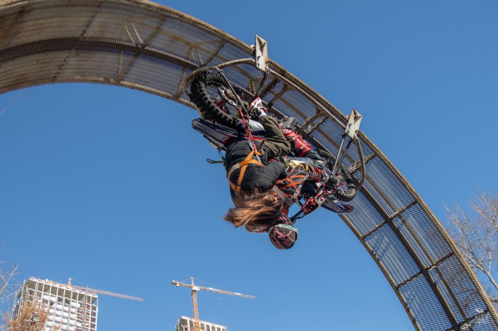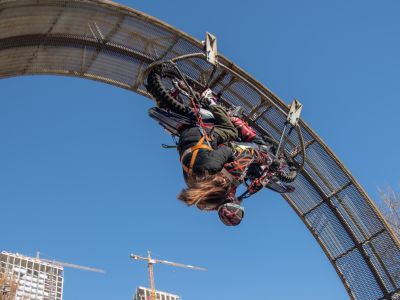Посмотреть выступления каскадеров — канатоходцев, батутистов, трюки на горящем квадроцикле!