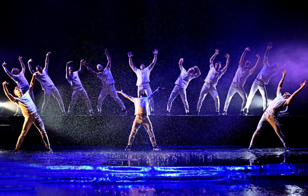 В шоу переплетены яркие музыкальные композиции с потрясающей хореографией под проливным дождём на протяжении всего спектакля.