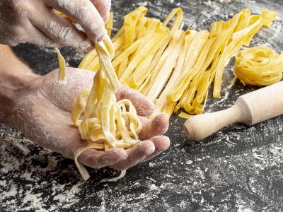 — Фетучини с лососем и сливочно-томатным соусом;