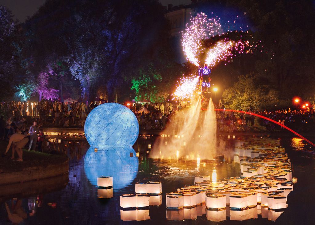 Апогеем фестиваля станет зажжение статным фонарщиком в атласном мундире «фонаря желаний» на лужайке сада, в центре пруда зазвучит прекрасный рояль, окутанный лучами лазеров. Участники события спустят на воду тысячи огоньков, загадывая самое сокровенное, что непременно сбудется.