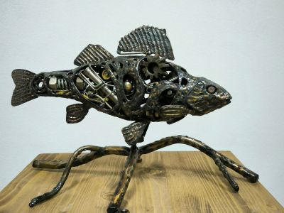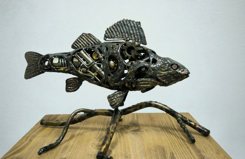 Более 200 работ, созданных в авторской технике терморосписи и художественной сварки: от мифических драконов до биомеханических рыб, от сибирских зверей до динозавров, от мотоциклов до сказочных героев.