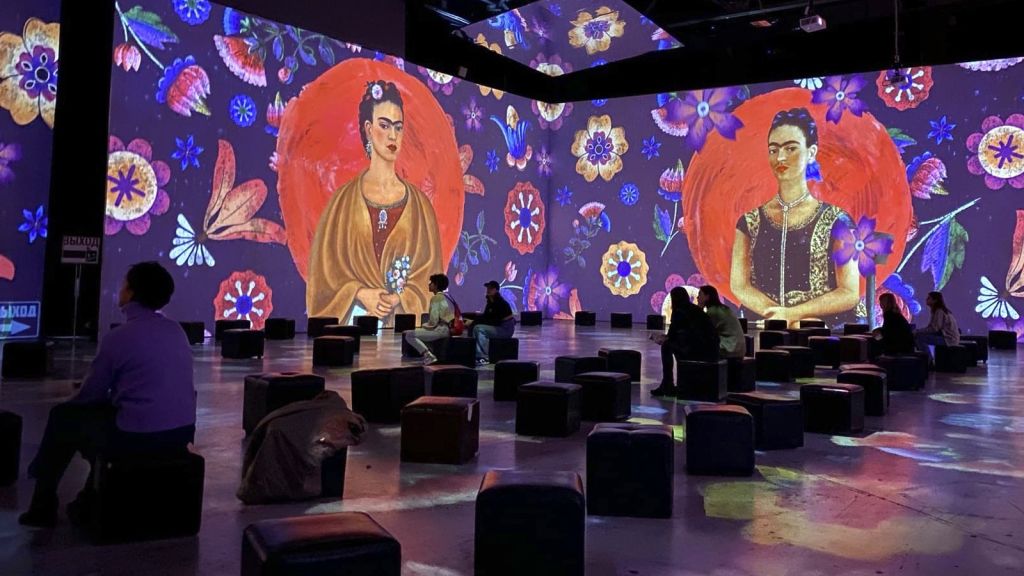 На выставке «Фрида. Viva la vida!» зрители увидят великолепный и динамичный мультимедиа спектакль — ожившие картины художницы в сопровождении очень откровенного рассказа от первого лица о её жизненных перипетиях. Закадровый текст читает Марианна Шульц — актриса, дублировавшая Сальму Хайек в фильме «Фрида».
