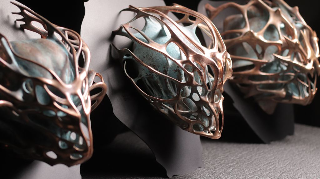 В центре экспозиции — два арт-объекта. Кинетический объект Юлии Низамутдиновой (Julia Cyberflora) Crypto Spore обращает зрителя к гипотезе доисторического момента «заселения» Земли, согласно которой жизнь могла попасть на нашу планету извне. Взрывная, но застывшая форма объекта фиксирует миг первичного контакта — точку, где энергия, информация и материя соединяются, чтобы запустить новые эволюционные сценарии. Его гипнотическое движение напоминает о постоянной возможности начала, перезапуска и порождения утопических миров, которые могут возникнуть из одного-единственного импульса.