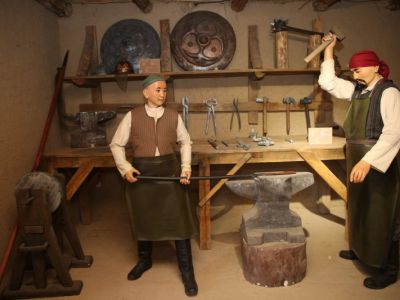 Ұстахана: Осы ұстаханаға жапсарлас салынған баспана қарапайым құрылыс материалынан — Қошқарата өзені жағасынан алынған саз балшық, яғни шымнан тұрғызылған. Жазда салқын, қыста жылы болып келеді. Қонақ бөлме, жатын және ұстаның демалатын бөлмелерінен тұрады. Демалатын бөлмеде сыпа салынған, суық кездері астына от жағылып, жылынған еден үстінде отыруға немесе жатуға ыңғайлы болды.