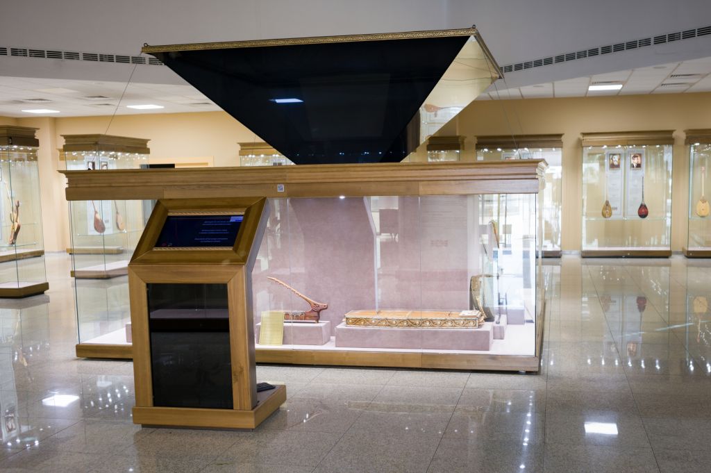 В мультимедийном центре традиционной музыки представлены уникальные инструменты видных деятелей казахского искусства.