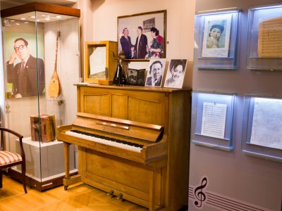 В музее представлены музыкальные инструменты, нотные рукописи с его произведениями, книги, фотографии, концертные костюмы, личные вещи, раскрывающие жизненную и творческую деятельность композитора.