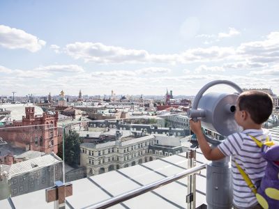 С крыши Главного Детского открывается уникальный вид на исторический центр: вы увидите Кремль, Политехнический музей, Лубянскую площадь и шпиль главного здания МГУ. Полюбоваться на город можно при помощи подзорных труб.