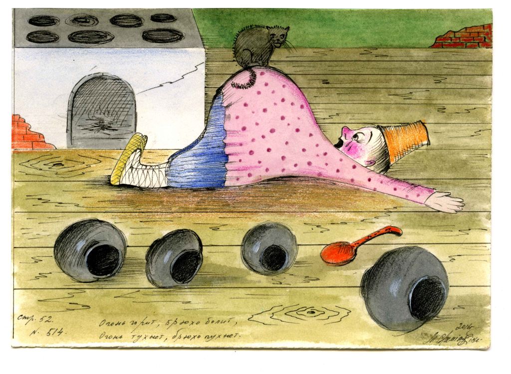 Серия графических работ Михаила Шемякина «Загадки русского народа» — это обращение художника к «забытому» русскому слову. Взяв за основу одноименную книгу Д.Н.Садовникова, которая и по сей день остается одним из наиболее полных и авторитетных изданий на тему русских загадок, мастер проиллюстрировал фольклорные тексты, связанные с самыми разными темами народного бытования: жилище, утварь, обряды, люди и строение их тела, пища и питье, рукоделие, украшения, двор и огород, мир животных и т.д. Около 100 оригинальных листов из этой серии будут показаны публике.