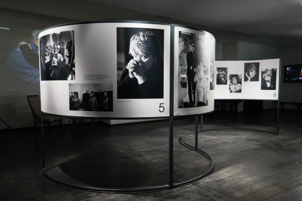 Выставка охватывает разные этапы развития театра: от первых десятилетий и становления труппы до крупных юбилейных событий и закулисной жизни. В объективе Роста — основатель театра Олег Ефремов, Галина Волчек, Олег Табаков, а также артисты, чья судьба неразрывно связана с «Современником»: Валентин Гафт, Марина Неелова, Михаил Козаков и другие. Эти портреты раскрывают не только сценические образы, но и внутренний мир художников, их характер, моменты творческого напряжения и поиска. Каждый снимок становится частью общего повествования о времени, о людях и о пути, который «Современник» прошёл вместе со зрителями.