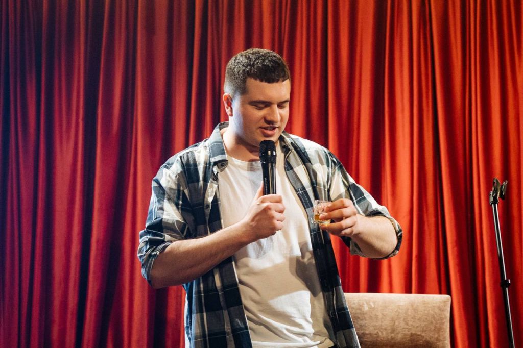 А это, пожалуй, любимый формат наших комиков, так как они могут и выпить, и поднять настроение нашим гостям. Правила очень просты: перед комиками стоит 10 шотов с увеселительными напитками и после каждой разрывной шутки (по мнению зала) комик выпивает шот. Звучит, как корпоратив на работе, но в роли коллег — комики нашего стендап-клуба.