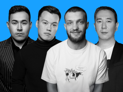 На сцене: Мадияр Сатвалдин, Сержан Аманов, Макс Ко, Максат Сыдыков.