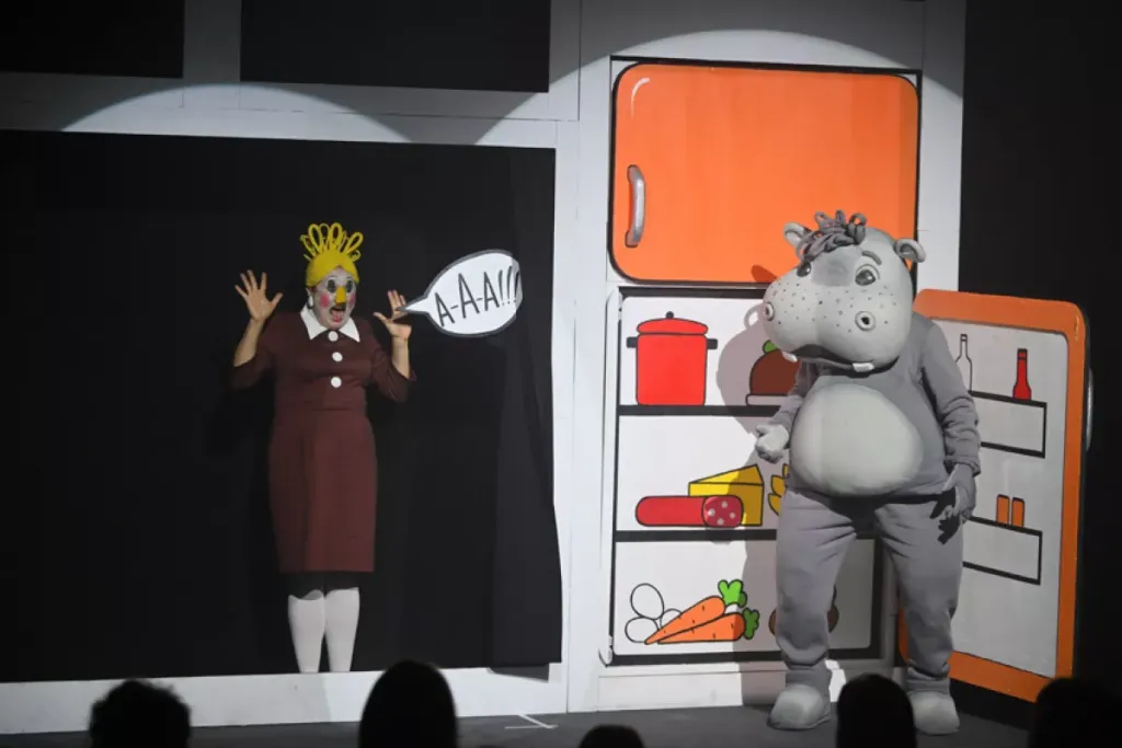 Однажды маленький Гоша решил привести домой ни котёнка, ни щенка, а бегемота. Главное, что бегемота в квартире мама, занятая работой, даже не заметила. Неужели такое возможно? Да, если мама очень занята работой. Наш спектакль — это фантастическая история для всей семьи о том, что важно друг друга не только слышать, но и видеть.