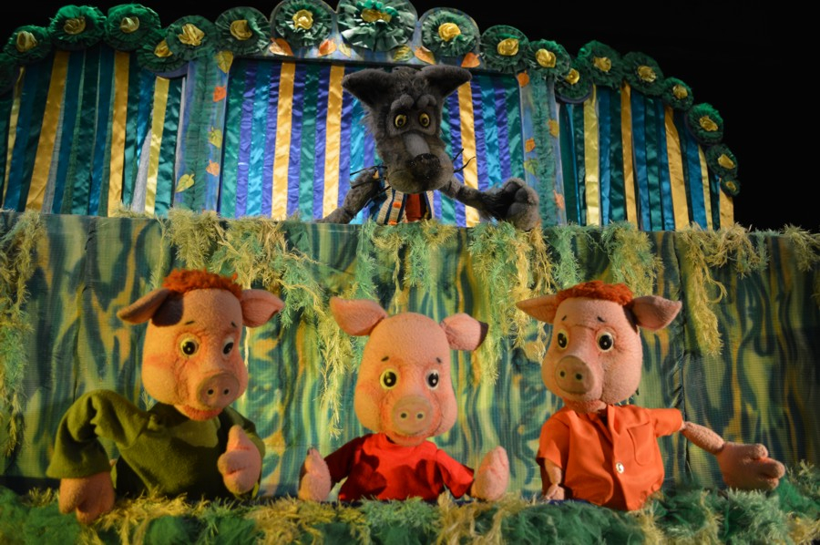 Тростевые куклы на ширме чувствуют себя настоящими артистами: они сами рассказывают свою историю, постоянно обращаясь прямо в зрительный зал. Кажется, что сам волк гоняется за поросятами не потому, что действительно хочет их съесть, а просто потому, что добросовестно играет свою роль. И у него получается отлично! В сказке есть песни, погони и много веселых моментов, которые всегда так нравятся маленьким зрителям.