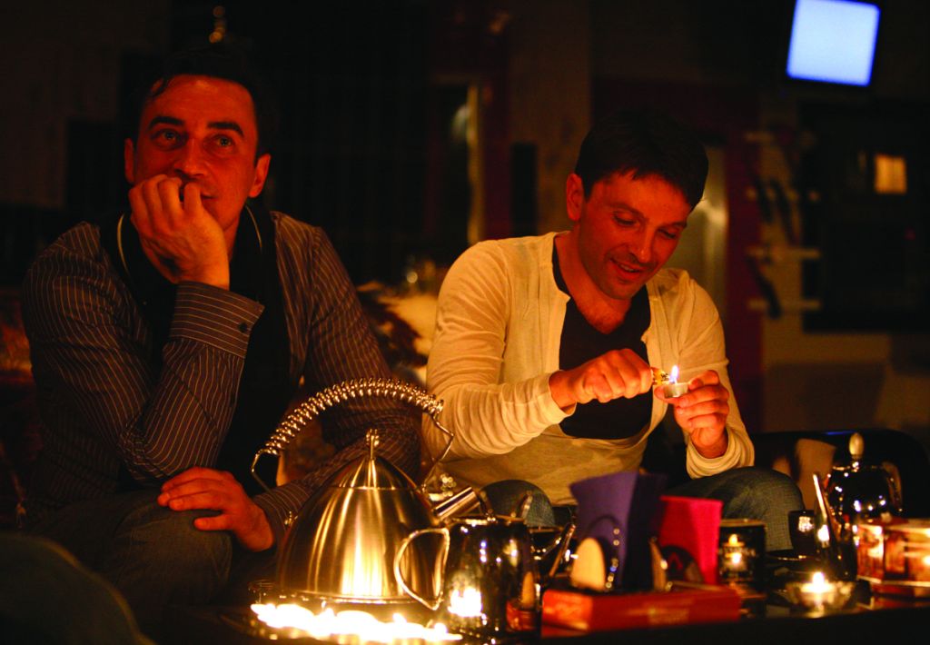 Начав работать над этим спектаклем, мы очень быстро поняли, что вообще не знаем, о чем он должен быть… Никакие мысли о сюжете или героях в головы не приходили, поэтому мы сидели и разговаривали. Просто разговаривали о вещах, которые волнуют мужчин среднего возраста, а было нам тогда, как раз, по 35-38 лет. Обо всем этом мы и говорили и, на всякий случай, записывали. Драматургии из этого всё никак не складывалось (да так и не сложилось), но сами мысли казались нам интересными. Когда мы исписали ими страниц девяносто, перед нами открылись два пути. Можно было, все-таки, попробовать начать писать пьесу, в которой герои иногда, «к случаю», произносили бы кое-что из того, что мы наговорили. А мы, понимая, что в жизни не произносят такие длинные и «хорошо выстроенные» тирады, все время сокращали бы их, пока не сократили бы полностью. Да и сюжет пьесы, развиваясь, наверняка бы безжалостно выкинул все лишнее. Тем более, что этот сюжет еще надо было придумать. Второй путь был — не притворяться никем, а просто произнести лучшее из того, что мы написали, от своего собственного лица. По нему мы, в итоге, и пошли, возможно, потому, что так было значительно проще… А что волнует мужчин в этом возрасте? В первую очередь, конечно, женщины. Потом — работа, деньги, успех, популярность (это — если работаешь в шоу-бизнесе, а мы, ведь, именно в нем и работаем), зависть к более удачливым коллегам, ровесникам, друзьям… да, вообще, ко всем более удачливым… но больше всего, конечно, женщины.