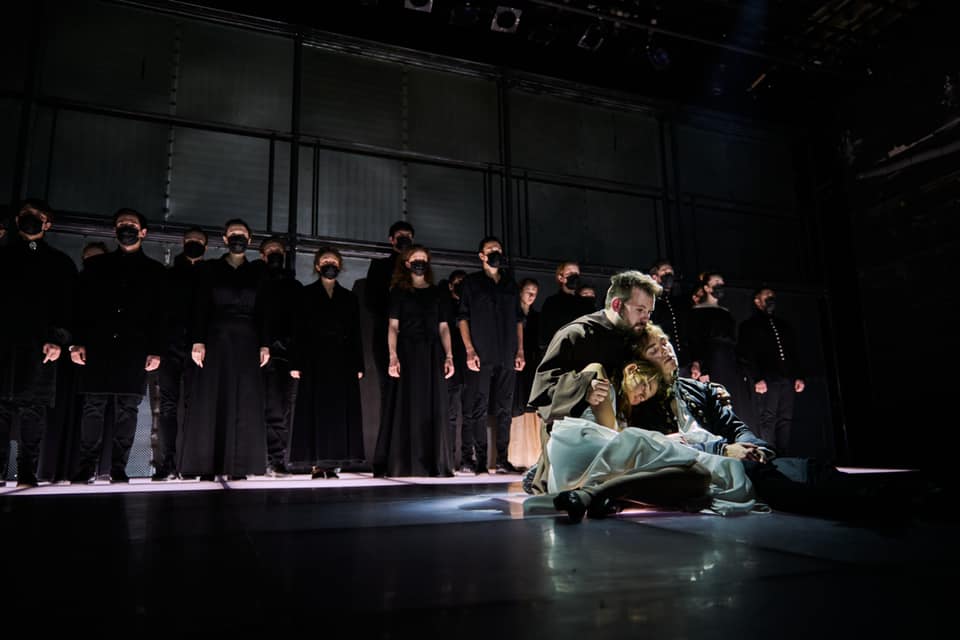 У «Ромео и Джульетты» Григория Козлова два автора: Уильям Шекспир и Борис Пастернак. Стих чеканит трагедию. Спектакль графичный, как гравюра, чёрно-белый, как слова на бумаге. История, в которой есть только два цвета. Бело-чёрный мир без полутонов и оттенков. Добро и зло, солнце и холод, любовь и смерть, сегодня и никогда.