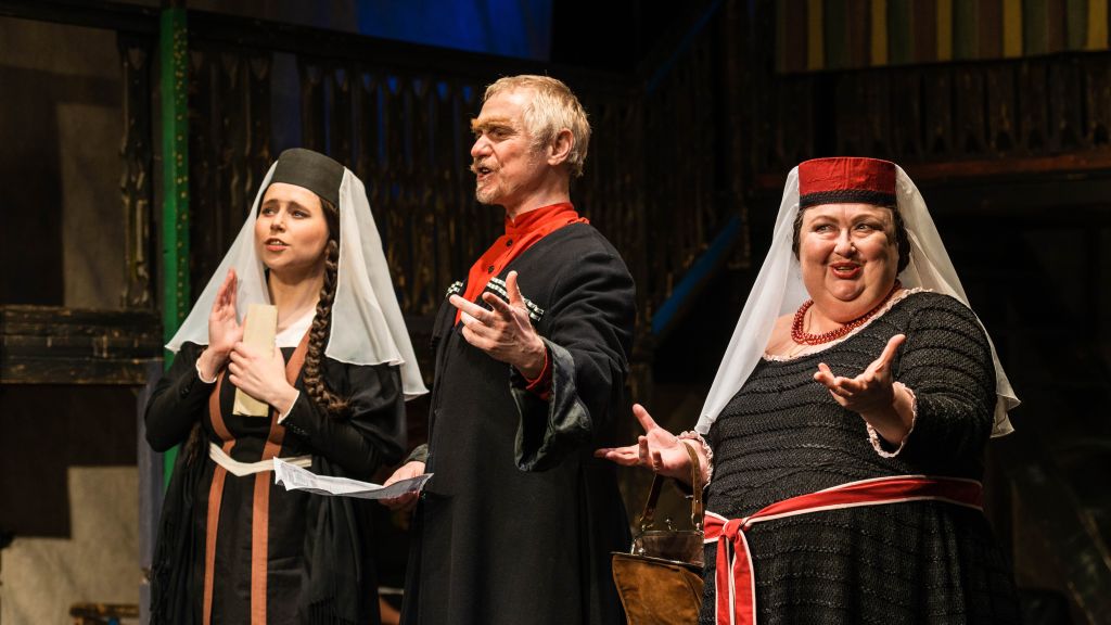 Эта музыкальная комедия давно считается классикой грузинской драматургии, а также настоящим хитом Театра Афанасьева. Не одно поколение зрителей успело познакомиться с хитростями и интригами свахи Ханумы, которая помогает молодым влюбленным обрести счастье. Режиссер Сергей Афанасьев вместе с актерами НГДТ творит свою «Хануму», приправленную колоритным грузинским многоголосием и зажигательными танцами! В Театре Афанасьева определили жанр спектакля как ностальгический балаган, ведь комедия «Ханума» любима зрителями более 40 лет, а концентрация забавных и трогательных событий на один квадратный сантиметр пьесы действительно производит впечатления милого и веселого балагана.