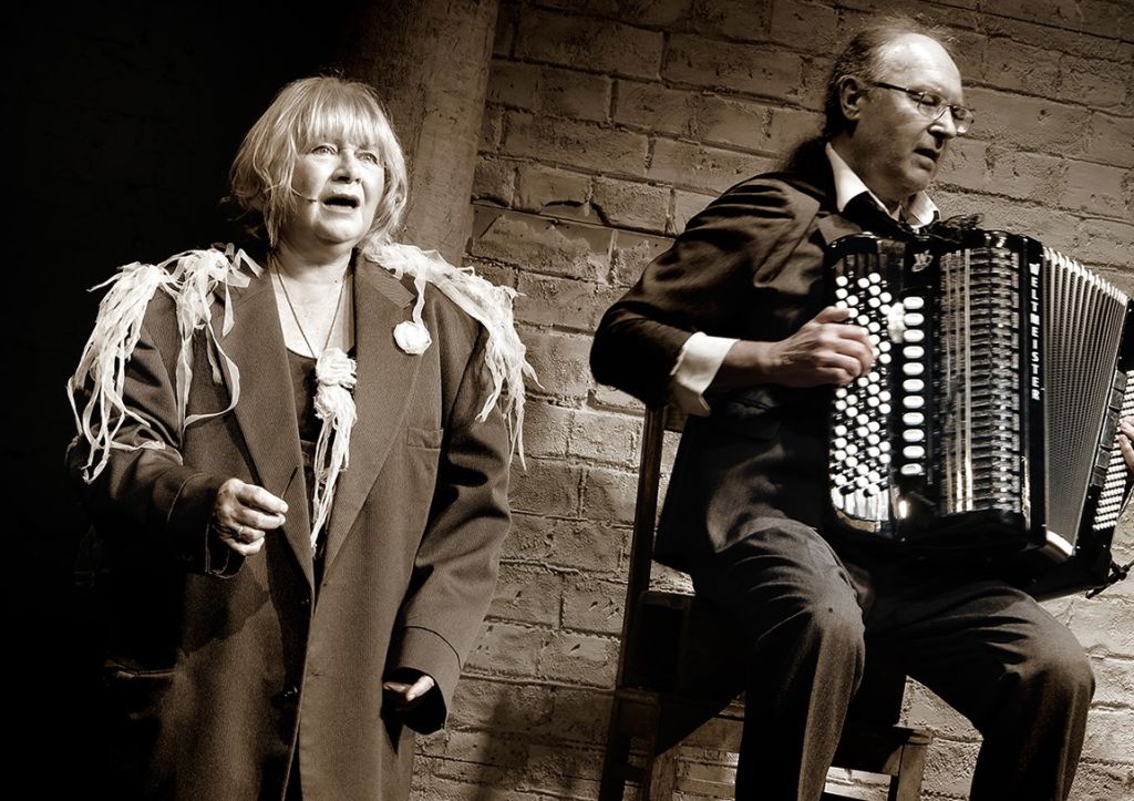 Спектакль Юрия Погребничко и Лилии Загорской — своего рода реконструкция такого концерта перед киносеансом. Из углов сцены смотрят друг на друга гипсовый пионер в ушанке и уменьшенная копия девушки с веслом, и «В парке Чаир» безнадежно распускаются бумажные розы.