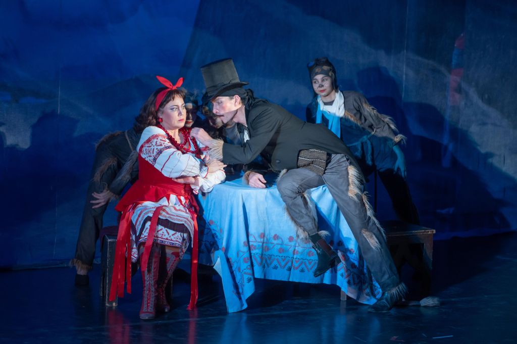 Каких только чудес не случается в зимнюю, ясную ночь перед самым Рождеством! Одну только ночь и осталось нечисти шататься на белом свете... Как тут Чёрту не подъехать мелким бесом к Солохе, слывущей ведьмою? Да, и сыну её, молодому кузнецу Вакуле охота досадить за то, что тот намалевал его так, что «инда черти хохочут сдуру». Вот и нагнал Бес пургу в той надежде, что старый Чуб, оставшись дома, помешает Вакуле увидеться с дочкой его, возлюбленной кузнеца, Оксаною — первой красавицей и по ту, и по эту сторону Диканьки... Ах, как смеётся гордая дивчина над чувствами несчастного влюблённого! Ах, как жестоко шутит, обещая пойти за него замуж, если он достанет ей такие черевички, которые сама царица носит! Но... Каких только чудес не случается в зимнюю, ясную ночь перед самым Рождеством...