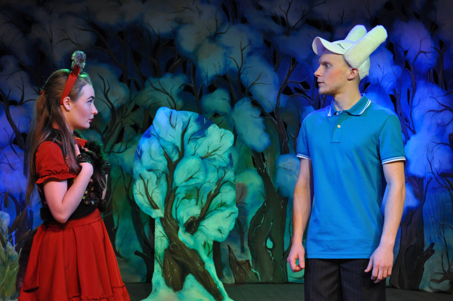 Музыкальный спектакль «Храбрый заяц» по сказке М. М. Бартенева – правдивая история о храбрости и отваге, о том, как настоящая дружба творит чудеса. Спектакль наполнен яркой атмосферой праздника и радости. Герои сказки – обычные лесные жители, но они имеют вполне человеческие лица, характеры и даже профессии. Главный герой, Заяц, является скромным студентом, Крот освоил профессию строителя, Сорока, везде сующая свой нос и все всегда знающая, – летчица. А Белочка – просто звезда, она самая модная в лесу и все хотят дружить с такой красавицей. И Заяц не исключение – ему пушистая Белочка очень нравится, он мечтает о дружбе, но боится: и наглого Волка, и Крота, и собственной тени. Зайчонок хочет доказать Белочке, что он смелый и отважный. Только как это сделать? Получится ли? Ведь ему надо не только преодолеть свою застенчивость и робость, но и одержать победу над самим собой! И однажды в минуту опасности Заяц решается встать на защиту Белочки. И тогда все в лесу понимают, что Заяц – настоящий храбрец и самый верный друг! Подарите своим детям возможность познакомиться с весёлой историей о храбрости и трусости, заносчивости и глупости, о том, что такое настоящая дружба.