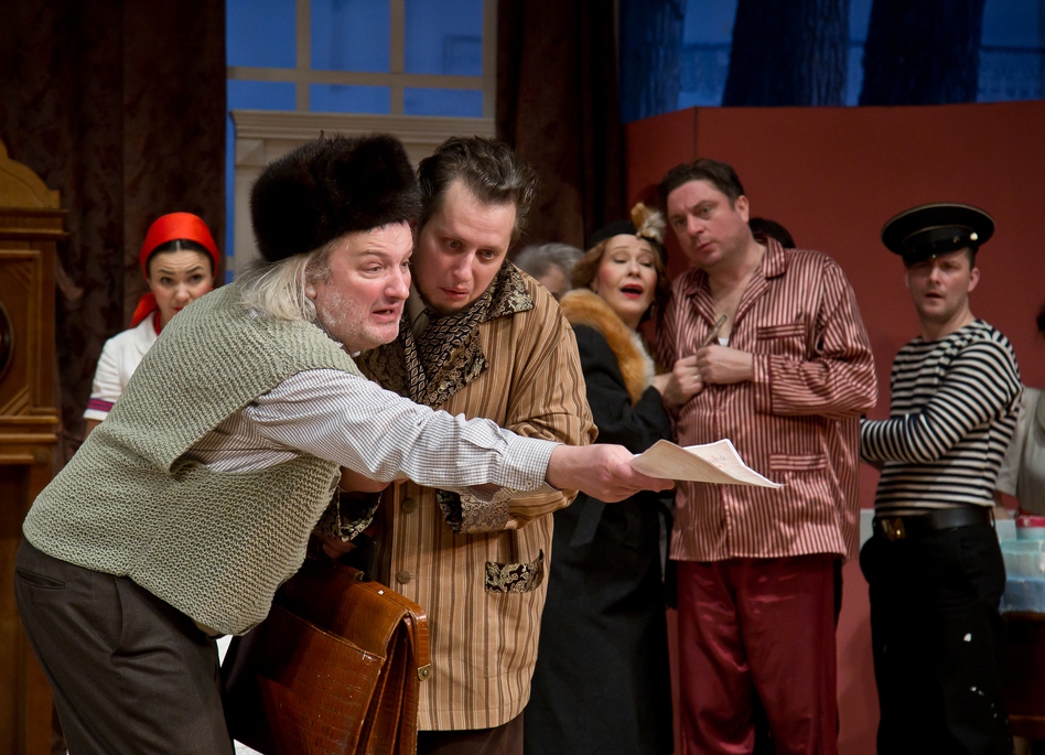 «Безумный день» — так назывался известный советский фильм 1956 года, поставленный по «Дню отдыха» Валентина Катаева. Фильм настолько же неприметный в смысле режиссуры, насколько удивительный по актерскому составу. Главные роли в нем исполнили Игорь Ильинский, Серафима Бирман, Сергей Мартинсон, Ростислав Плятт, Игорь Горбачев, Ольга Аросева и другие. Театр «Эрмитаж» предлагает свой новый авторский взгляд на эту пьесу — на наше ушедшее прошлое, на беготню и суету сегодняшнего дня.