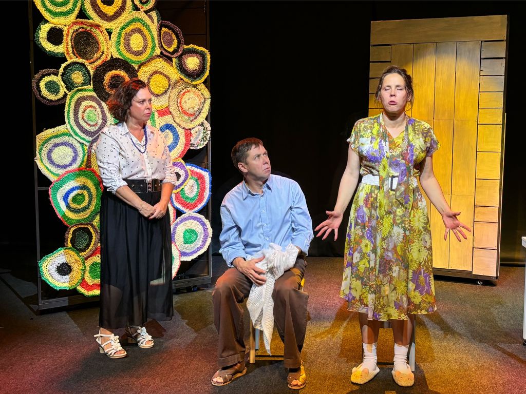 Простая деревенская семья Журавлёвых пытается подружиться с заезжими городскими соседями — меланхоличным художником Владимиром и его эксцентричной молодой женой Викой. Это неспроста: отец семейства Никанор Журавлёв давно мечтает, чтобы их дочка уехала в город учиться на художницу. Неожиданно появившиеся культурные соседи — это же счастливый шанс всё устроить! По крайней мере, так искренне считает любящий отец, в чём он легко убеждает и свою жену Агриппину. А в доме непризнанного гения — свои проблемы, что неудивительно: художник — это почти всегда диагноз, мирно сосуществовать с которым способна далеко не каждая нормальная женщина. Достаточно взглянуть на портрет жены, который наш живописец написал со своей супруги Вики — это же готовый повод для очередного скандала! А тут ещё и весьма колоритный друг семьи Стасик заявился, чьи намерения пока не ясны, но уже тревожат ранимую душу Владимира. Совершенно очевидно, что неожиданный визит простодушных соседей застаёт увлечённую своими проблемами парочку врасплох. Ничего не подозревающие Журавлёвы оказываются катализатором нового витка выяснения отношений между супругами, причём фееричная красавица Вика запросто обнажает перед гостями не только душу, но и почти всё остальное. На этой фазе кончается терпение у вроде бы безобидной Агриппины: так вот они какие, городские! Но ведь надо же как-то выходить из ситуации! Чего только не сделаешь ради будущего любимой дочки... Спектакль получился и смешной, и грустный, и отчасти даже поучительный. Это комедия, но она отнюдь не из разряда тех легкомысленных постановок, где можно вдоволь посмеяться над забавными приключениями незадачливых героев, а выйдя из зрительного зала, тут же напрочь забыть о них. С одним антрактом. В составе исполнителей возможны изменения без дополнительного уведомления.