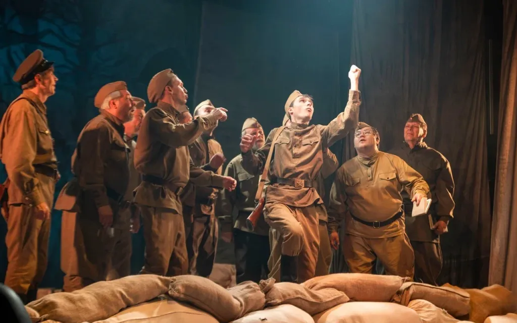 Василий Тёркин — уникальный герой, знакомый каждому с детства. Весёлый, терпеливый, неунывающий, отважный, мудрый простой солдат, имя которого стало нарицательным. В спектакле роль Тёркина сыграет не один актёр, а целый актёрский ансамбль. Вместе с ним на сцене окажутся и другие безымянные герои войны: танкисты в опаленной броне, генерал, чьё лицо хранит печать тяжких решений, девушка-санинструктор, чей взгляд полон сострадания, пленный немец и простые деревенские старики...