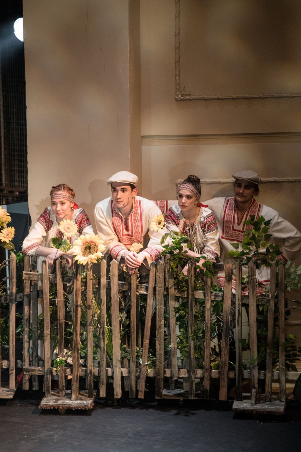 Очень важный персонаж спектакля — Хор. Он не только добавляет фольклорный колорит, но и вводит зрителя в обстоятельства каждого рассказа. Музыкальная основа этих хоровых вкраплений — русские и казацкие песни, которые так любил Василий Шукшин.