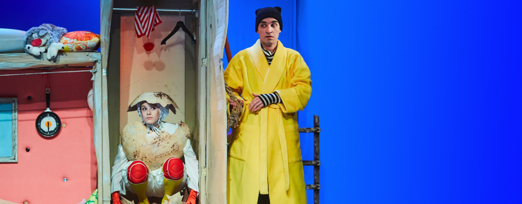 Это спектакль для дошкольников и младших школьников, в котором много доброго юмора, музыки и обаяния. Да и разве может быть что-то более очаровательное, чем огромный пушистый чёрный кот и только что вылупившийся из яйца птенец?