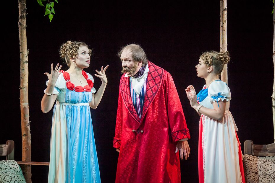 Давно ли вы видели на сцене Ивана Крылова? Скорее всего никогда! «Не басни же ставить?!», - возразите вы. А меж тем один из первых комедиографов русского театра писал не только про мартышку и очки. Театр Русской Драмы достаёт из запасников литературы настоящий бриллиант чистого юмора и колоритного русского языка - незаслуженно забытую пьесу «Урок дочкам». Комедию положений о девицах Лукерье и Фёкле, что «без французского языка, как без хлеба, сохнут», и о находчивом, но безденежном молодце Семёне - эдаким Фигаро русской сцены, худрук Театра Михаил Щепенко превращает в искрящийся юмором и музыкой водевиль. Спектакль «Урок дочкам» - это ещё один водевиль в репертуарной палитре театра. Театр «Русской драмы» вновь открывает публике «дефицитные» произведения русской классики в форме яркой театральности и азартной актёрской игры. Текст Крылова усиливается остроумными песенными куплетами, сочинёнными Михаилом Щепенко, и распахивает современному зрителю настоящую кладовую уже забытого, хоть и родного, языка. «Вить я индоохрипнула кричавши», «отбоярили», «неруси» - эти и другие «перлы» русской речи невзначай напоминают: а не слишком ли и мы увлеклись модным да заграничным, что нуждаемся в переводе с русского на русский?
