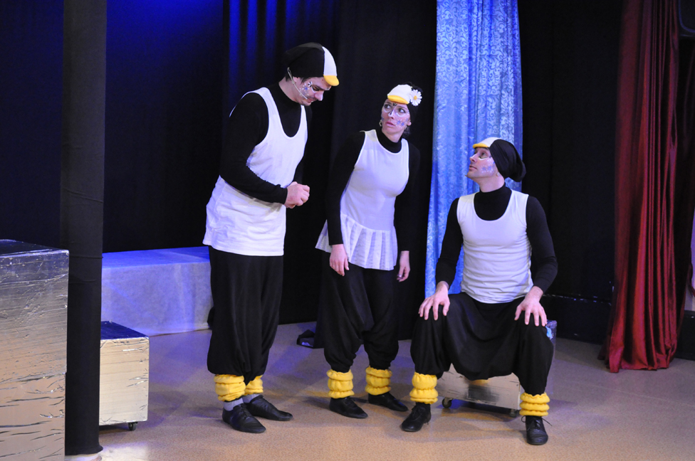 Спектакль наполнен замечательной музыкой, он легок в восприятии и расскажет зрителю не только историю трех пингвинов, спасшихся от Всемирного потопа на Ноевом ковчеге, но и заставит от души похохотать над взаимоотношениями этих странных птиц, над самовлюбленностью и растерянностью голубки, над внезапным поворотом сюжета.