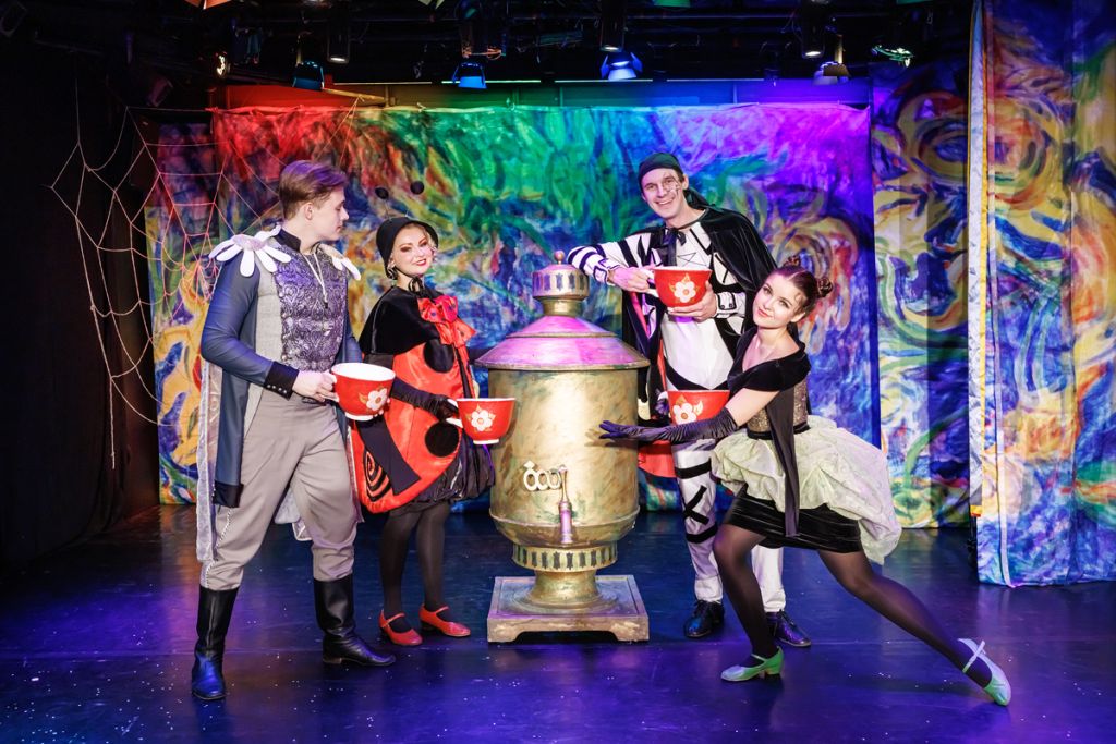 Приглашаем на именины к Мухе-Цокотухе! На интерактивном спектакле вы сможете сами поздравить изящную именинницу! Со смелым Комариком и добродушной Божьей Коровкой выпьем вкусный чай с душистыми баранками, почитаем стихи, споем песенки и от души повеселимся! В гости к Мухе придет коварный, но невероятно обаятельный паук, а их пламенное танго никого не оставит равнодушным!