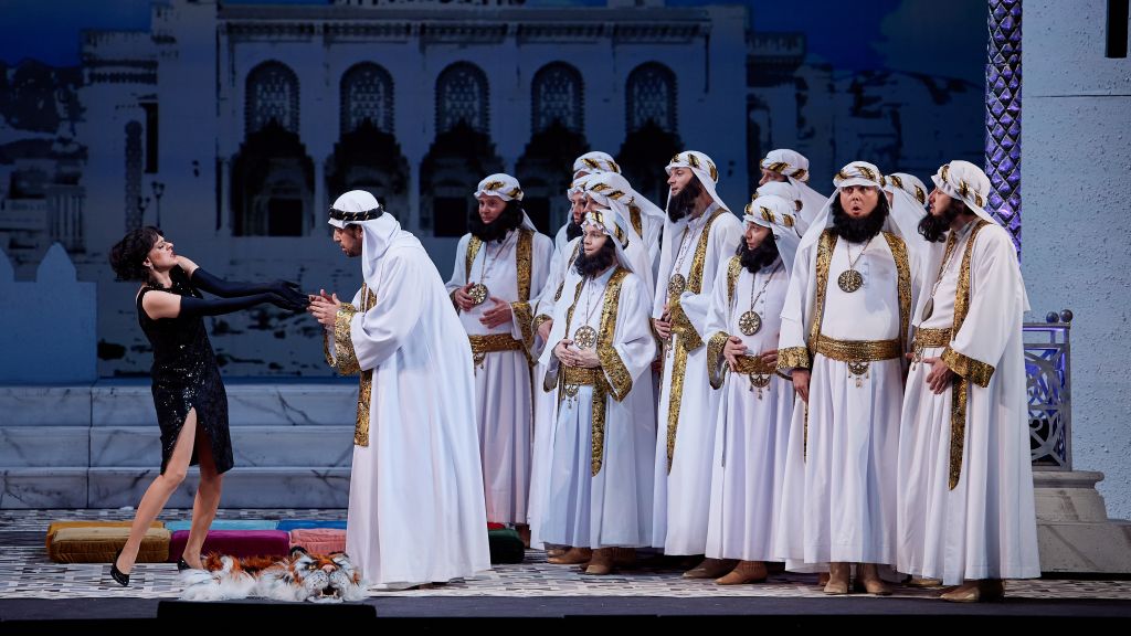 Опера Джоаккино Россини. Исполняется на итальянском языке (сопровождается синхронными титрами на русском языке). По воле морской стихии и по прихоти алжирского бея прекрасная итальянка Изабелла оказалась в плену. Но не в привычках темпераментной красавицы покоряться судьбе и мужчинам: она легко обводит вокруг пальца двоих поклонников, чтобы воссоединиться с третьим, заодно спасая супружескую пару от развода и множество соотечественников — от рабства. Вот это характер! Главную партию в своей первой полномасштабной опере-буффа «Итальянка в Алжире» (1813) Джоаккино Россини отдал любимому голосу — колоратурному контральто — и любимой женщине (точнее, одной из них), великолепной Мариетте Марколини. Звучание глубокого и сочного тембра в партии, изобилующей фантастически виртуозными фиоритурами, покоряет уже с первой каватины Изабеллы — Cruda Sorte, а впереди ещё и феерические ансамбли, и горделивое патриотическое рондо Pensa alla patria. Не менее щедр Россини и в отношении других солистов: для баса cantante, подвижного и певучего, он написал труднейшую партию одураченного бея Мустафы, для тенора di grazia — роскошную, полную высоких нот партию Линдоро, с чудесной выходной арией Languir per una bella, предваряемой элегичным соло валторны. У прочих героев тоже есть эффектные номера, но когда они собираются в ансамбли, партитура начинает искрить так, что дух захватывает, особенно в знаменитом финале первого акта — с его звукоподражательной чехардой «динь-динь! бум! бах-бах! кар-кар!»: воистину, как говорил Стендаль, организованное совершенное безумие! Выдвинув солистов на первый план, Россини сделал свою оперу ещё и многолюдной: она населена поющими наложницами и евнухами, корсарами и янычарами, берберами и итальянцами. В этом «море самого непринуждённого комизма» (Стендаль) время от времени встречаются острова нежной лирики и рефлексии: Россини способен как смешить, восхищать, кружить голову, так и трогать и воодушевлять. «Но уж темнеет вечер синий, пора нам в оперу скорей, там упоительный Россини...» Совету классика определённо стоит последовать! Действие первое: Зал во дворце алжирского бея Мустафы. Правителю наскучила послушная и скромная жена Эльвира, он желает жениться на итальянке, дерзкой и соблазнительной. Отдав приказ капитану корсаров Али немедленно отыскать для него заморскую красавицу, Мустафа предлагает своему любимому невольнику итальянцу Линдоро жениться на Эльвире. Противясь прихоти повелителя, Линдоро перечисляет качества, которыми должна бы обладать его невеста, но Мустафа не оставляет юноше выбора. На морском берегу корсары во главе с Али делят добычу с разбившегося корабля. Среди пленников — итальянка Изабелла, которая отправилась на поиски своего возлюбленного Линдоро в сопровождении нового поклонника, Таддео, выдаваемого ею за дядю. Он с ужасом думает о плене, но Изабелла уверена в собственной власти над любым мужчиной. Дворец бея. Ни Линдоро, верный своей возлюбленной, ни Эльвира, сердце которой отдано Мустафе, не желают соединять судьбы. Однако когда бей обещает отпустить Линдоро на родину с мешком золота, только бы он увёз Эльвиру, тот соглашается. Бею сообщают о пленнице-итальянке. Эльвира в отчаянии, она просит Линдоро дать ей перед отплытием проститься с Мустафой. Наложницы и евнухи славят непобедимого бея. Изабелла пленяет